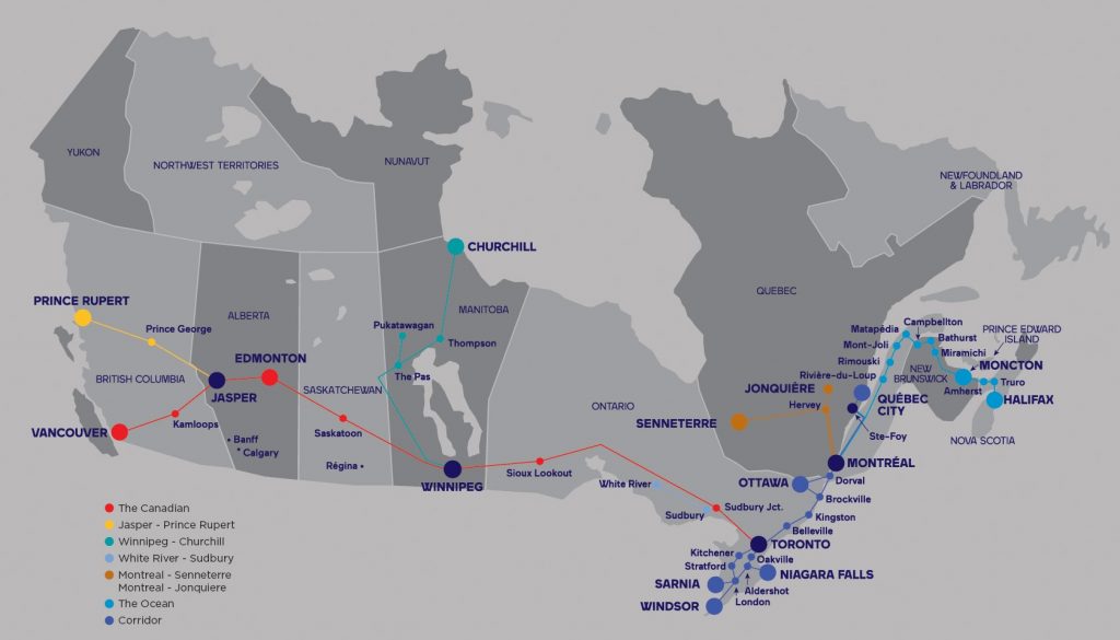 Offering some of the most scenic views in all of North America, Canada’s excellent long-distance train network is a great way to experience all the best of this incredible country, from the pristine beauty of the Canadian Rockies to the dynamic big cities of the East and West Coasts. VIA Rail operates 494 trains per week in eight Canadian provinces over a network of 7,800 miles of track. So whether you travel on VIA Rail’s classic trans-continental train, The Canadian, from Toronto to Winnipeg, Edmonton, Jasper and Vancouver, the inter-city trains between Toronto, Montréal and Québec, or the Ocean from Montréal to Halifax, you’ll experience fresh, chef-prepared meals, comfortable, relaxing amenities, and spectacular views throughout!